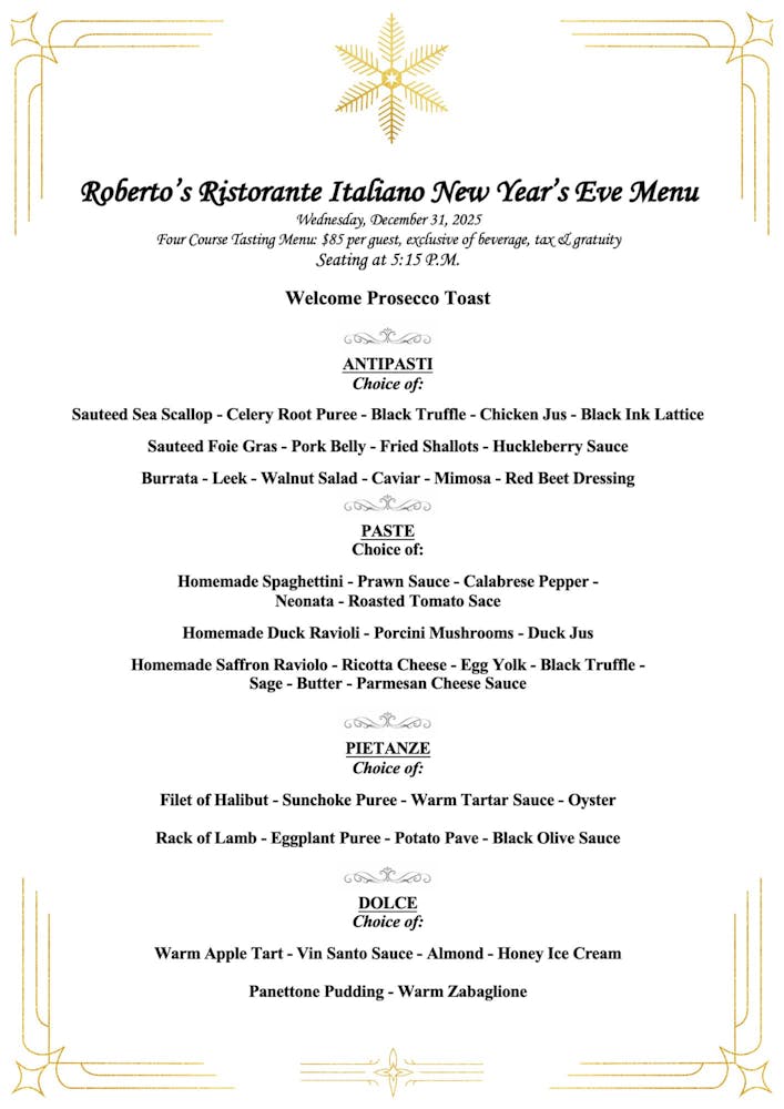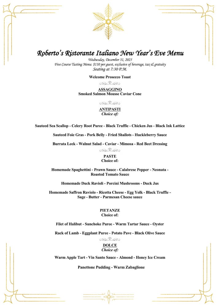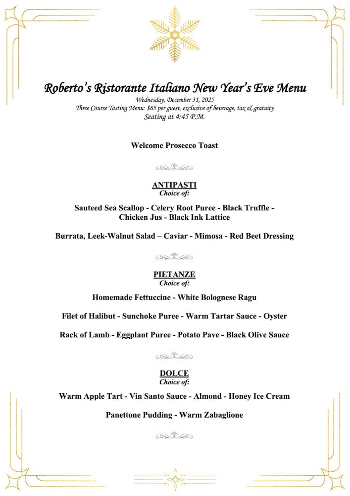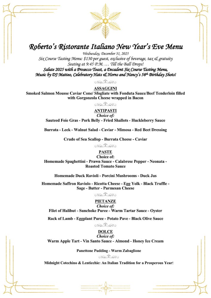 (Pricing exclusive of beverage, tax & gratuity) Please advise if you will be joining us for a midnight toast.