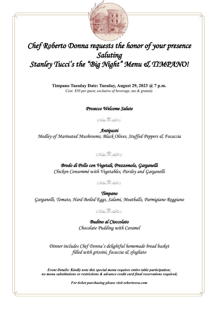 Roberto's Big Night Timpano - August 29th