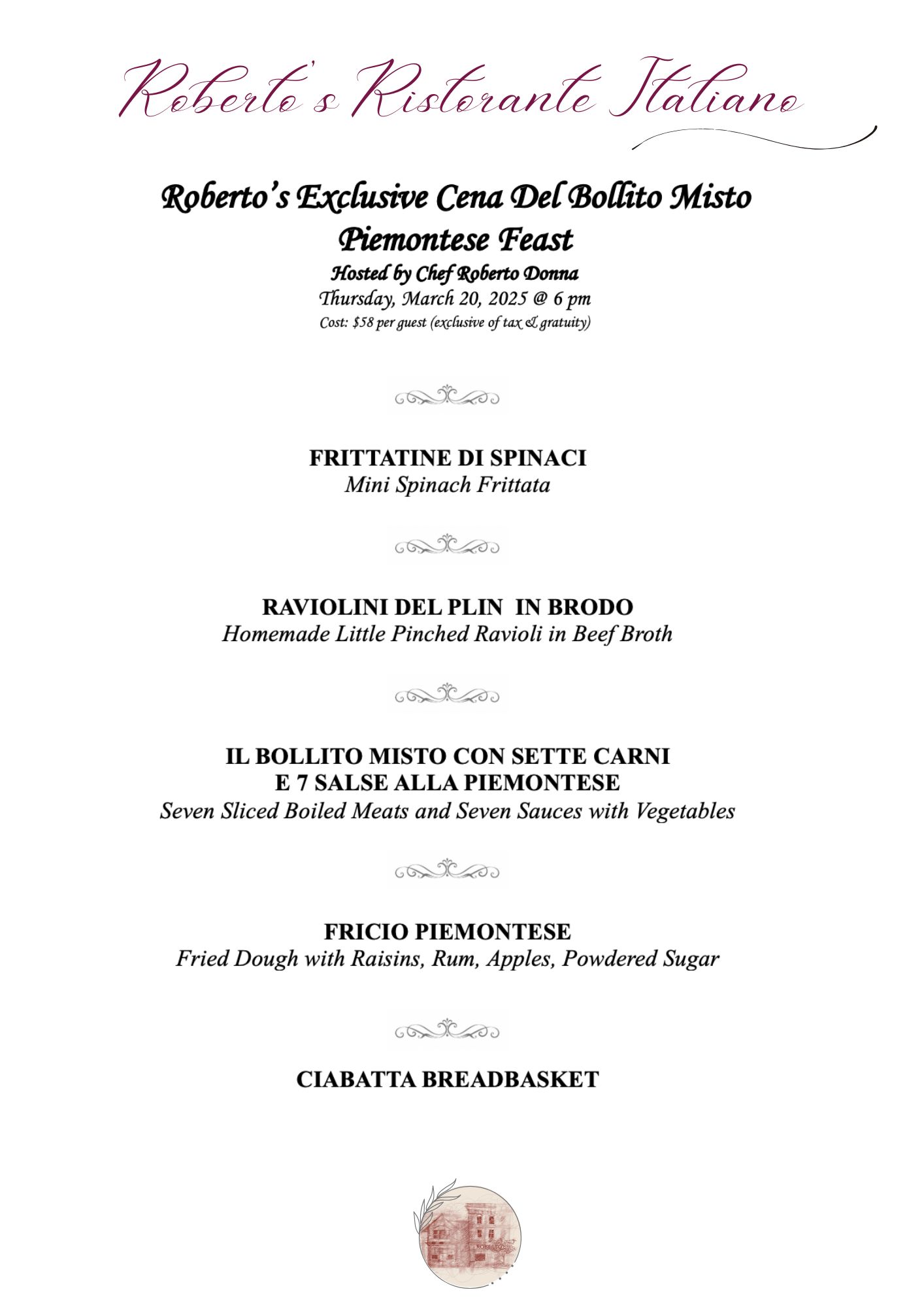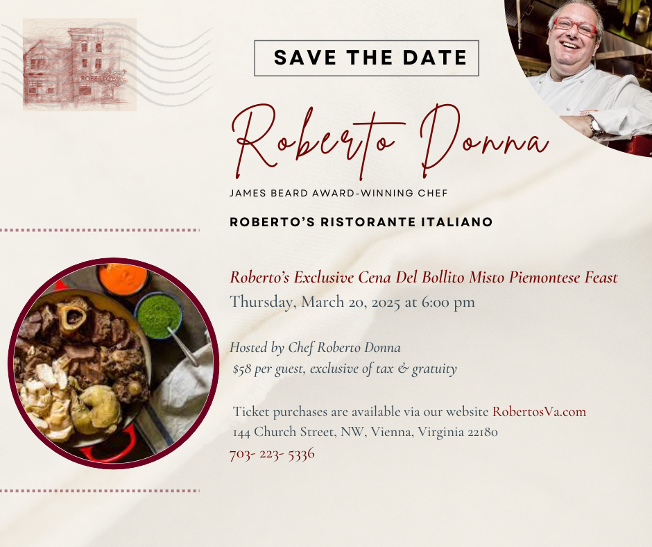 Roberto's Exclusive Cena Del Del Bollito Misto Piemontese Feast March 20 2025 | 144 Church Street NW, Vienna, VA 22180 Sold Out