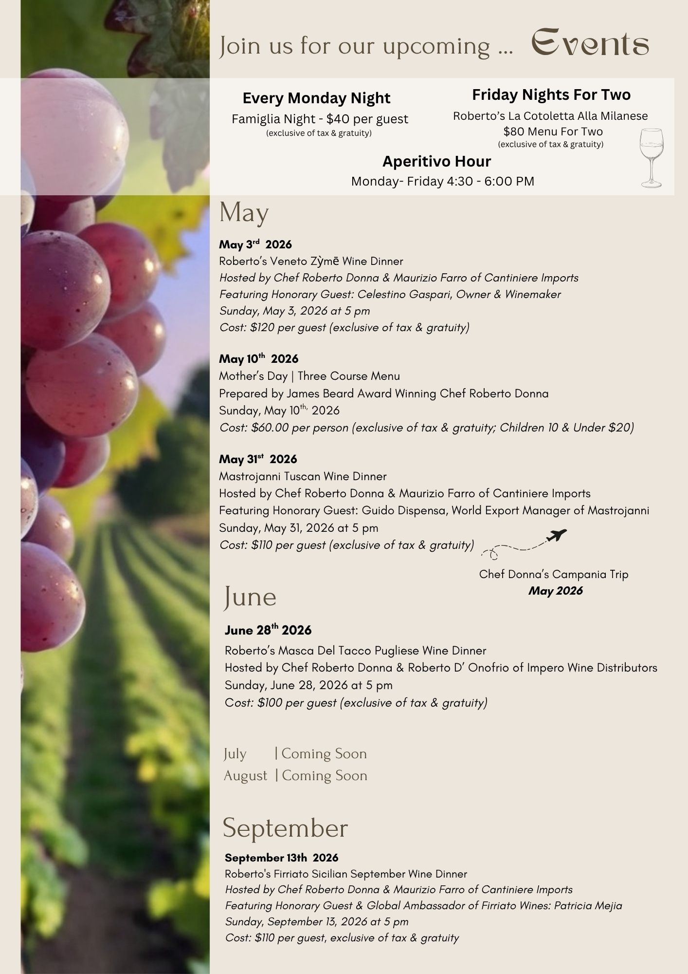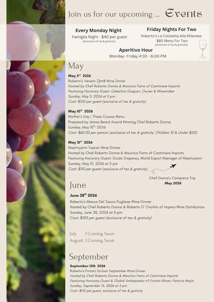 Roberto's Masca Del Tacco Pug;iese Wine Dinner - June 28, 2026